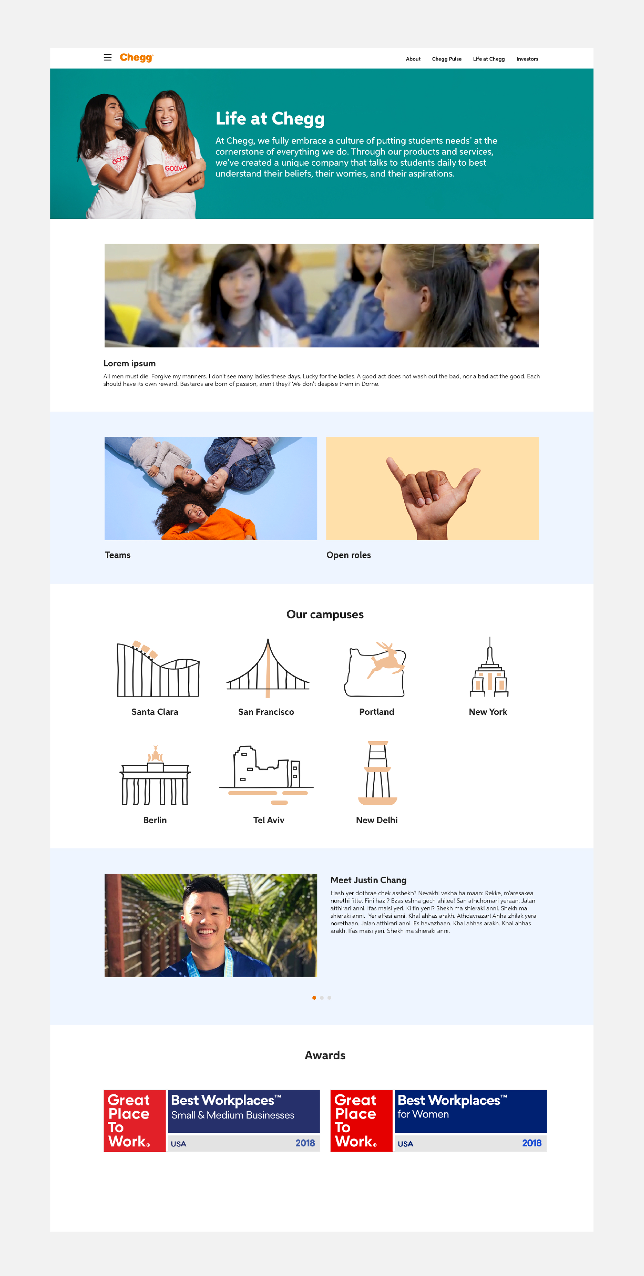 As a part of the Chegg rebrand, I redesigned our corporate facing landing pages. Looking at the overall needs of the business, I created a design system that can be easily transferred across the different landing pages.